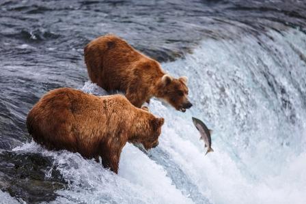 lososy v rieke a medvede