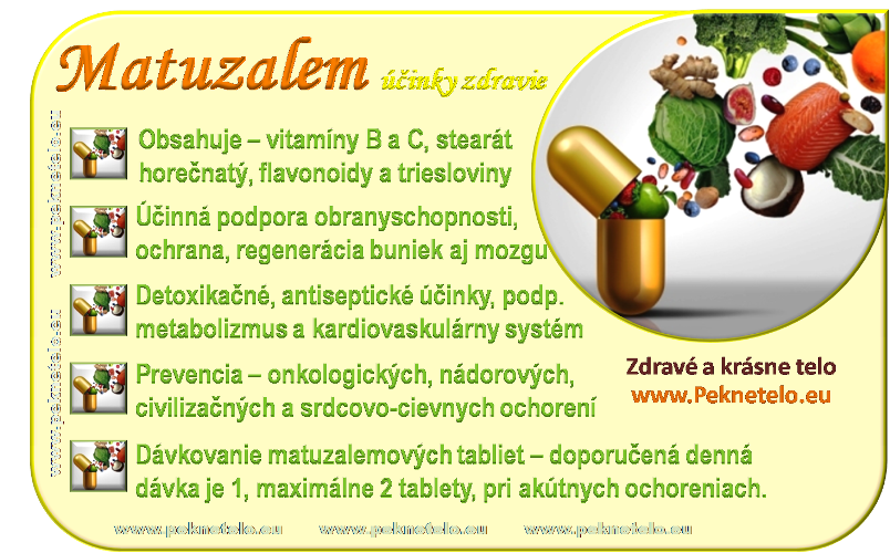 Ak nepoznáte tento doplnok výživy, tak pozorne čítajte… Tento vitamínový komplex vitamínov B a C má skutočne pozitívny vplyv na mnohé problémy. Z čoho je tento doplnok, aké látky obsahuje, na aké problémy sa hodí a ako matuzalem dávkovať???